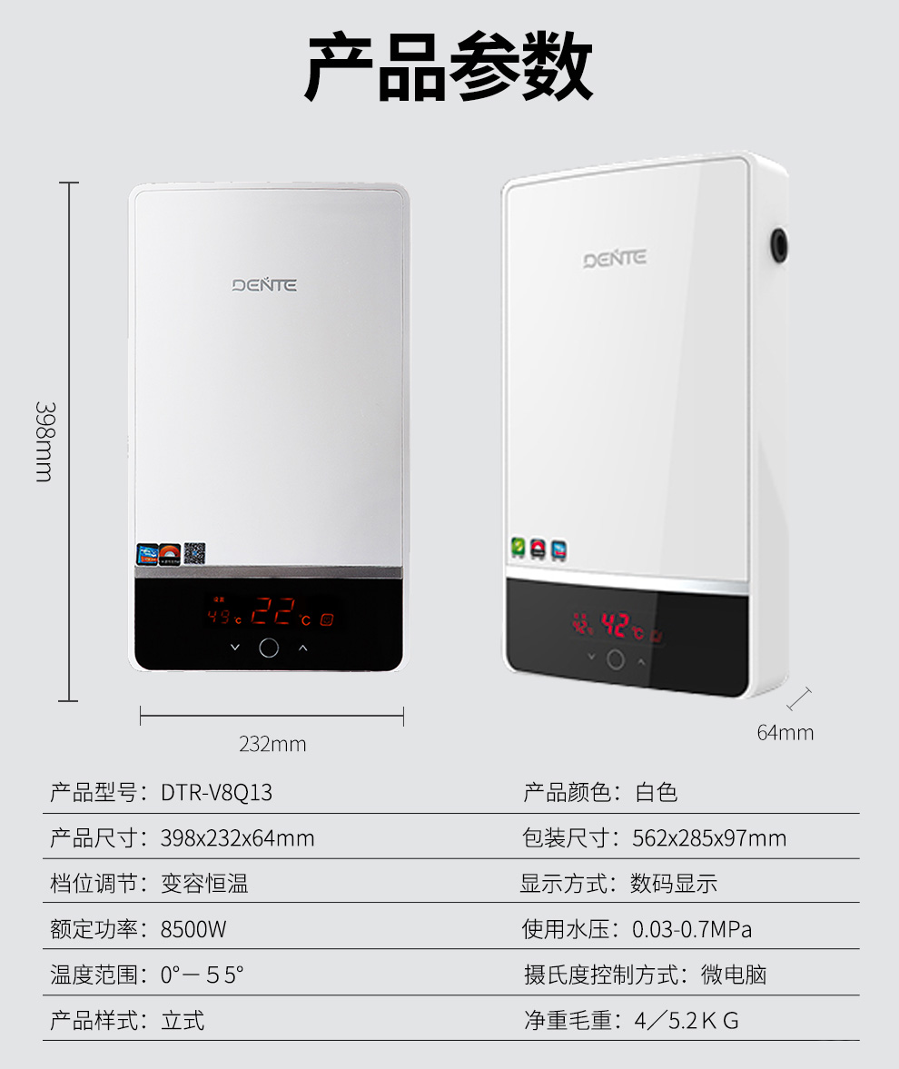 ——德恩特 DTR-V8Q13 家用恒溫機 多路供水