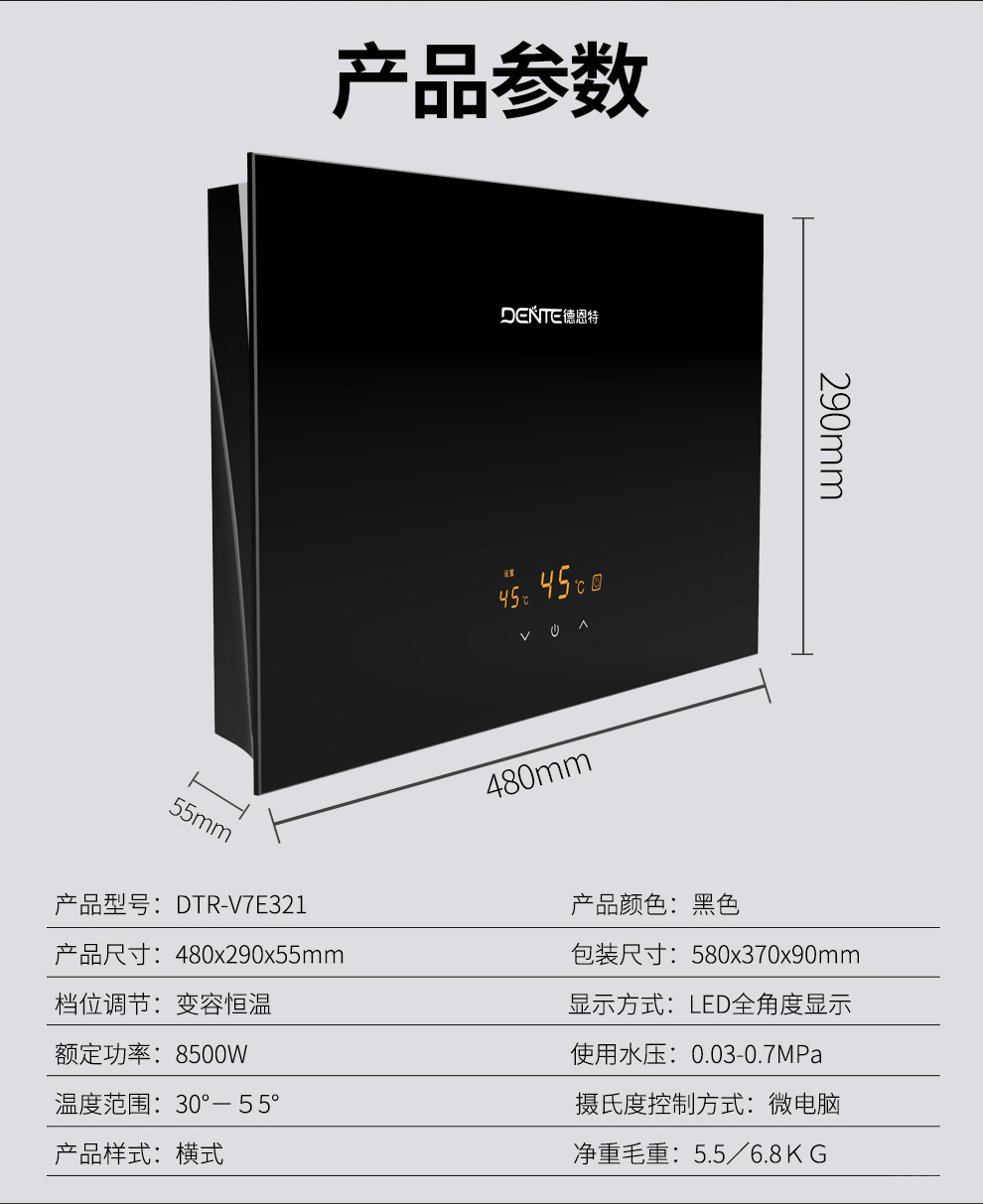 ——德恩特DTR-V7E321恒溫即熱式電熱水器