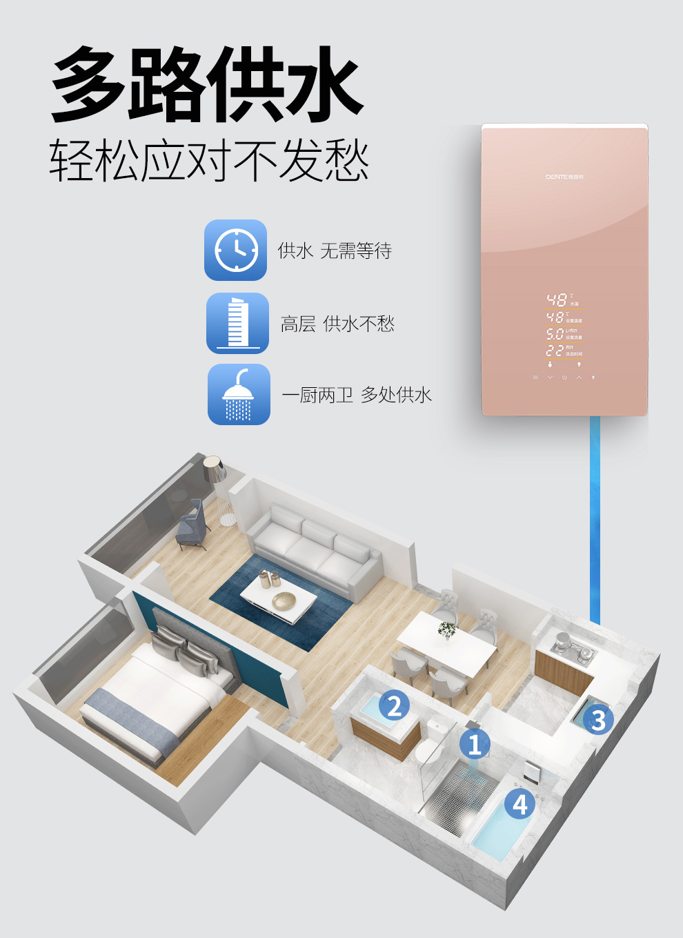 德恩特品牌旗下涵蓋即熱式電熱水器,速熱式電熱水器,快熱式電熱水器品牌和凈水機(jī)等